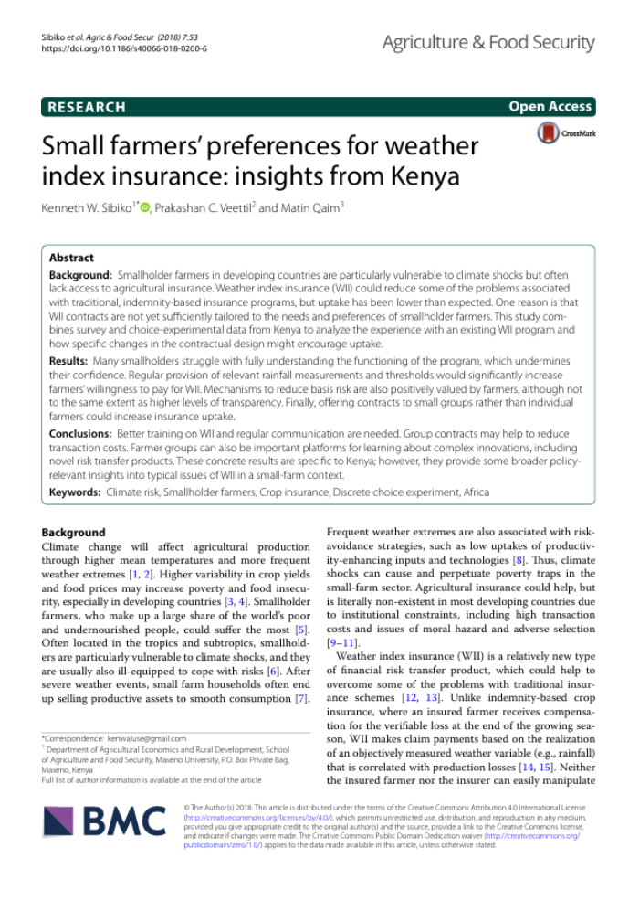 Small farmers’ preferences for weather index insurance: insights from Kenya