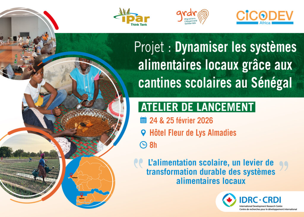 Le consortium formé de IPAR Think Tank, GRDR et CICODEV, va procéder au lancement du projet « Dynamiser les systèmes alimentaires locaux grâce aux cantines scolaires » (SALCSS) les 24 et 25 février 2026 à Dakar (Sénégal). Les objectifs poursuivis à travers cet atelier de lancement, sont de : SALCSS est un projet de recherche-action financé […]