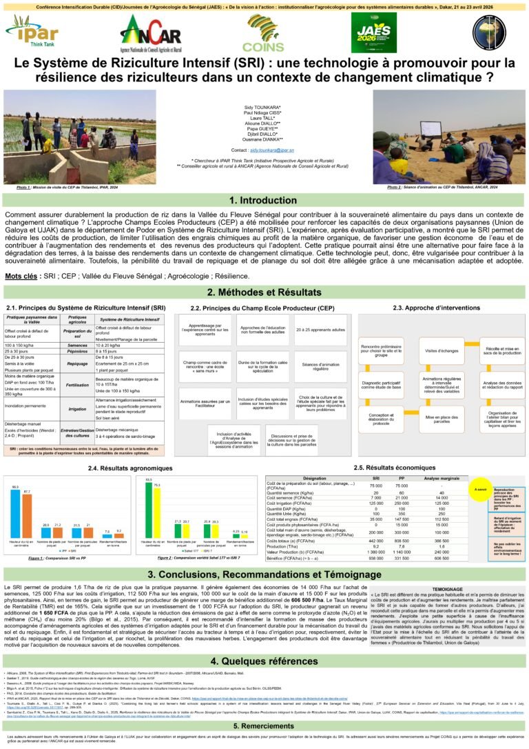 Comment assurer durablement la production de riz dans la Vallée du Fleuve Sénégal pour contribuer à la souveraineté alimentaire du pays dans un contexte de changement climatique ? L’approche Champs Ecoles Producteurs (CEP) a été mobilisée pour renforcer les capacités de deux organisations paysannes (Union de Galoya et UJAK) dans